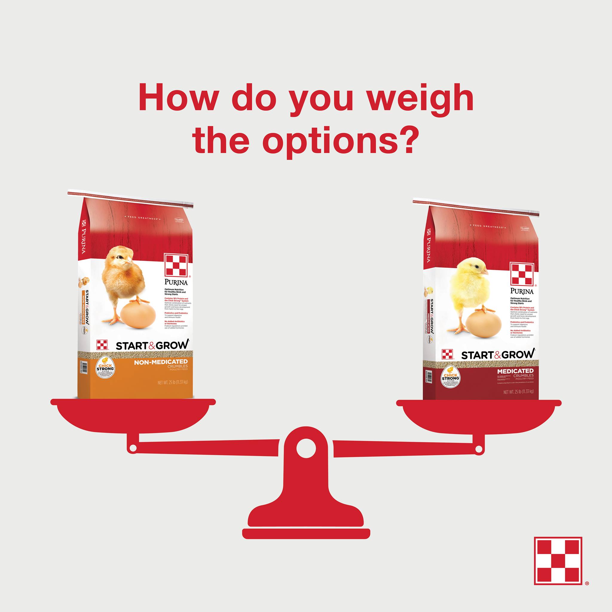 We recommend Purina® starter feeds because they include everything your baby chicks need, no need to add anything else.