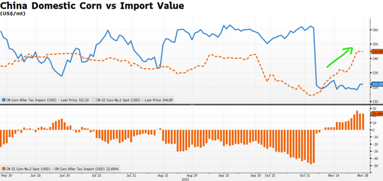 With how little the USDA has penciled in for Chinese corn imports, there is huge potential. Especially when South America will be tied up with soybeans come February. We will be the only game in town if China needs corn for blending their damaged crop.