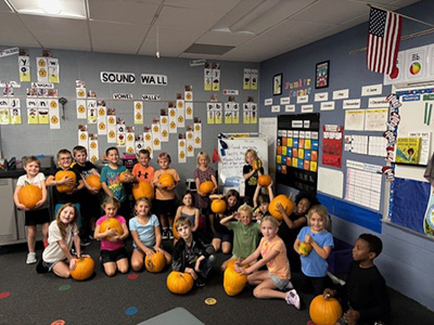 Roland-Story first graders helped Brad prepare the radish and carrot seeds for planting. Next year, Brad’s goal is to grow jack-o-lantern pumpkins for the elementary school.