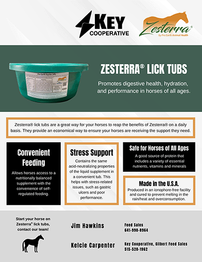 Key Cooperative is pleased to announce that we now offer Zesterra® Horse tubs by Pro Earth Animal Health.